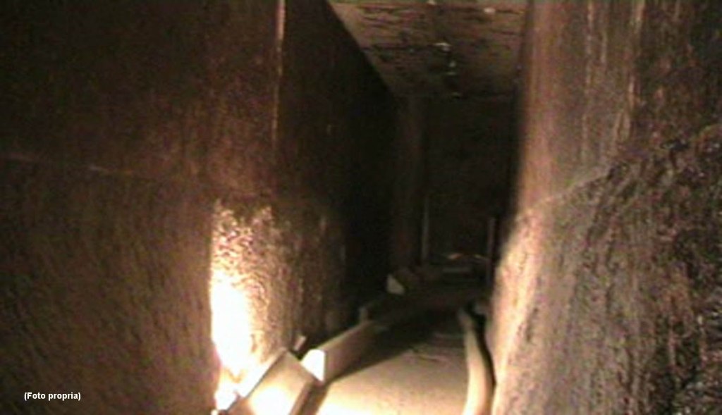 <<In alcuni giorni ventosi, all’interno della piramide, soprattutto nella parte orizzontale del corridoio ovest, fra le due barriere, è avvertibile un suono che dura circa 10 secondi.>>.