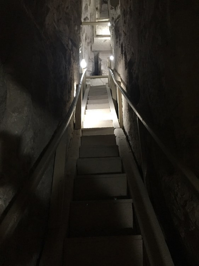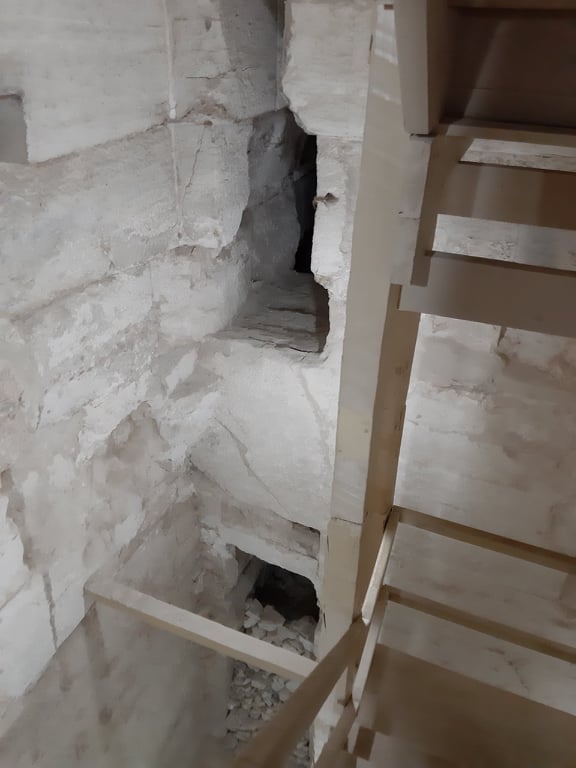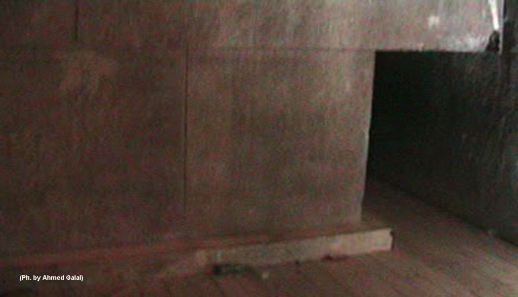 Nell’angolo sud-est, esattamente in corrispondenza dell’asse verticale della piramide, un corto passaggio conduce ad un pozzo verticale, oggi danneggiato, che fu chiamato “camino”, alto 14 metri del quale è ignoto il significato.