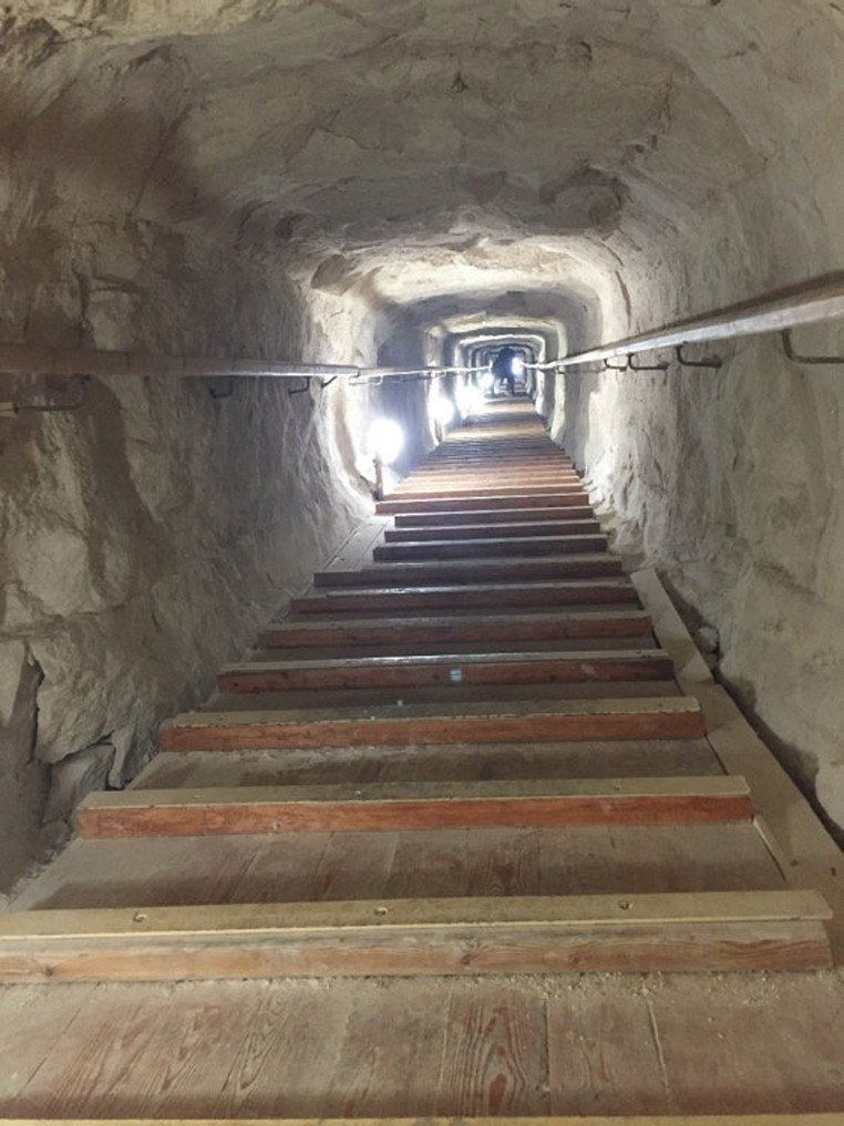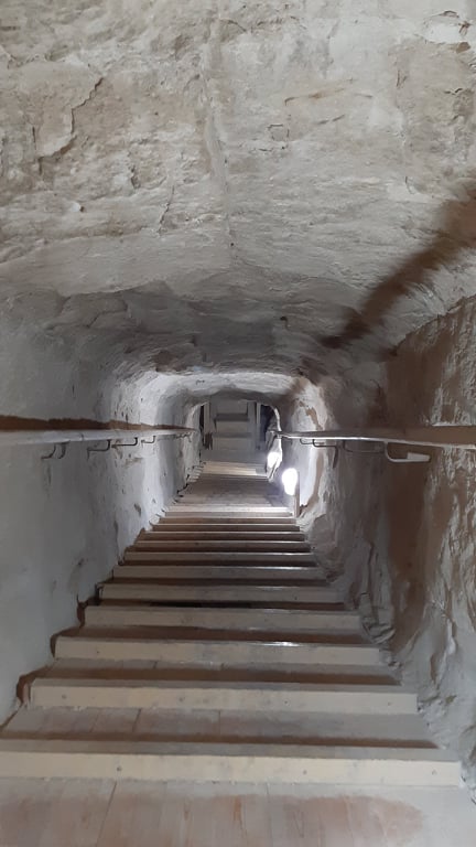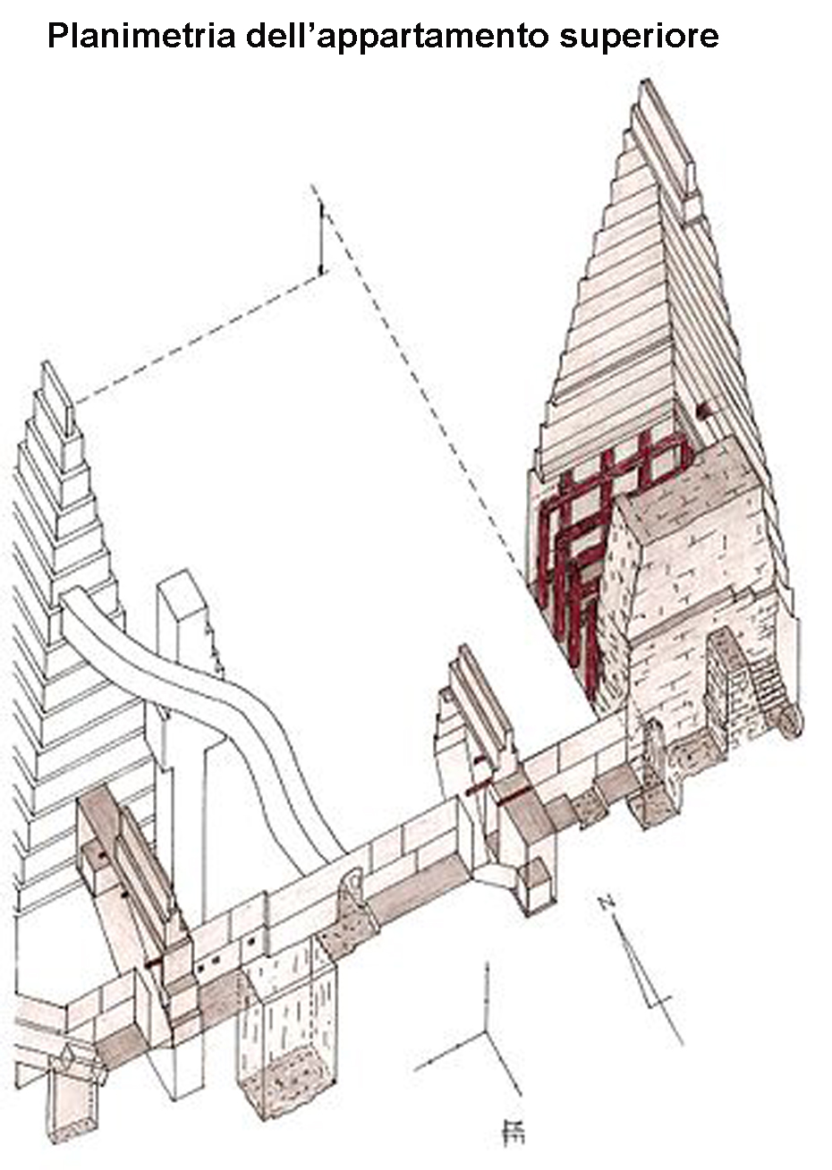 L’ingresso del lungo corridoio che porta alle camere interne, è situato sul lato nord a un’altezza di 28 metri dal suolo.