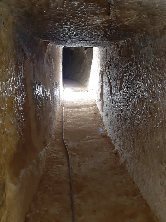 Uno stretto passaggio quadrangolare separa la prima camera all’interno della piramide