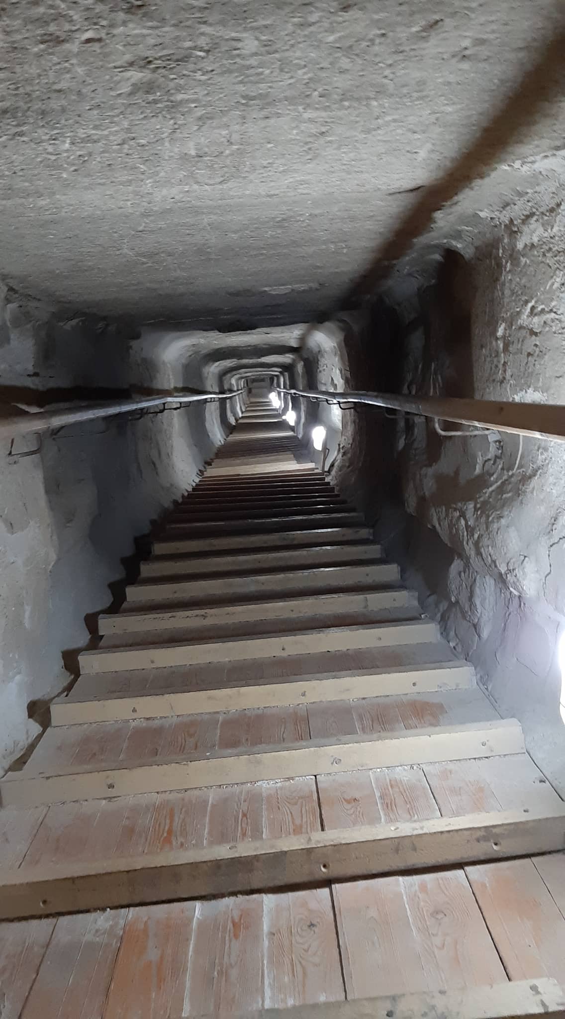 La piramide presenta ancora il rivestimento in calcare bianco meglio conservato di tutte le altre piramidi egizie e presenta un ingresso sulla parete nord e uno sulla parete ovest. Che ne dite, proviamo ad entrarci?